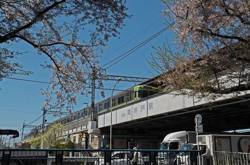 三鷹台から乗り、3駅目の高井戸で降りる。ここは南側に並行する神田川沿いの桜並木が見事なのだ。