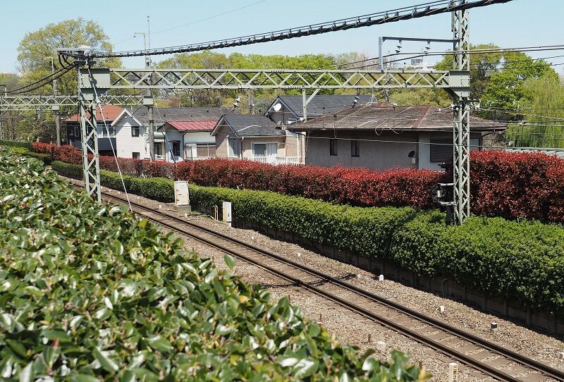 線路は高い位置にあるので、隙間電車風にしか撮れない。