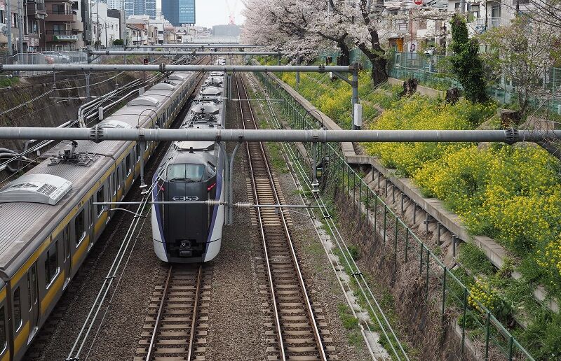 吉祥寺行きの方が桜はよく見える。