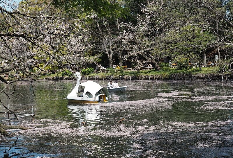 4月10日、天気もよくなったので、井の頭公園に行ってみた。その昔、ここのボートは都営で料金が安かったから、小学生の頃はよく漕ぎに来た。現在は手前の足漕ぎボートが700円(30分、以下同じ)、奥に見えるスワンボートが800円、手漕ぎボートが500円になっている。