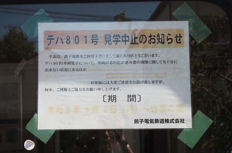 老朽化が進んで窓が開けられず冷房もないので、令和3年8月から車内には入れなくなっている。まず復活することはないだろう。