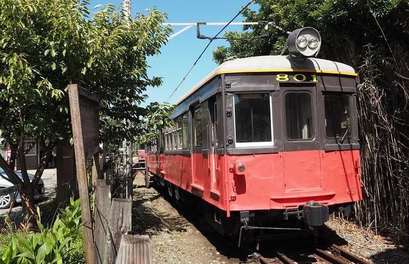 伊予鉄から来たデハ801はまだ車籍があり、休憩所代わりになっていたらしい。