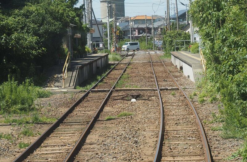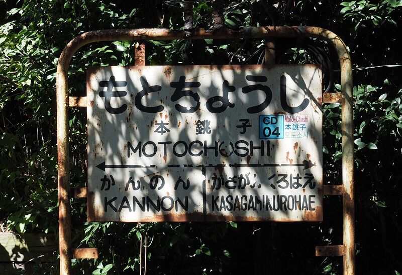 さらに20分ほど待ち、外川行きに乗り込む。下校の中学生や外人観光客で座席はほぼ埋まっていたが、運良く前寄りに1人分を確保できた。変電所を増強したようで、冷房がそこそこに効いているのは予想外だった。ホームは半世紀前からずっと段差が付いたままで変わっていない。知らない人が降りたらまず間違いなくこけるだろう。