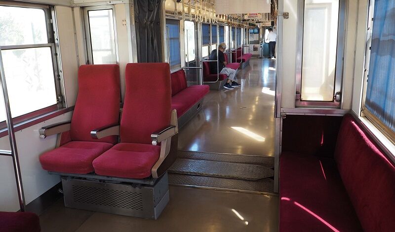 デハの連結面には2人分のクロスシートがある。銚電で改造したらしい。