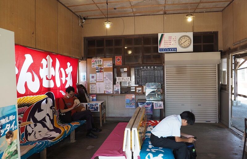 待合室はタレントのヒロミがテレビ番組とタイアップしてリニューアルしたもの。