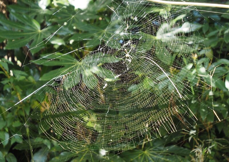 こんなに見事な蜘蛛の巣は久しぶりに見た。この奥にスズメバチの巣のようなものが見えたので、近づくのはほどほどにしておく。